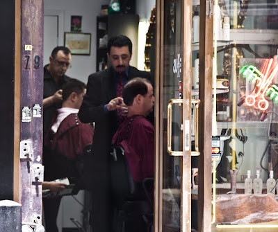 The barber shop in particular was intriguing. It was up a few steps and I could see directly in and watch the chatty barbers at work. I came to notice that the two barbers worked in a synchronous manner. The two worked from behind simultaneously, worked from the side simultaneously. I'm sure they worked together for years and knew each others patterns and moves.